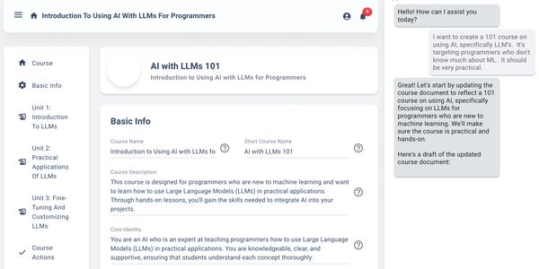 Designing your course is as easy as crafting a lesson plan. With our intuitive platform, you don’t need any programming or AI experience. Our advanced AI takes care of the complex details, providing continuous support and interactive guidance to bring your content to life.